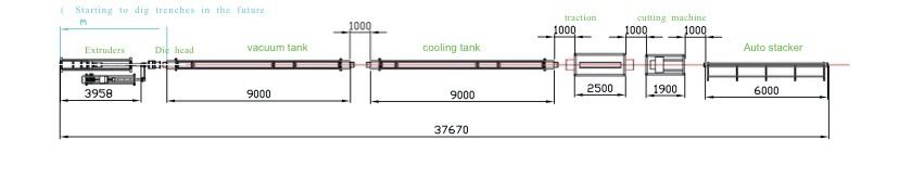 مواد اولیه+مواد افزودنی → مخلوط کردن → فیدر خلاء → خشک کن قیف → تک پیچ تک پیچ → کد رنگی اکسترودر → قالب و کالیبراسیون → دستگاه تشکیل خلاء → مخزن خنک کننده → تریلر → دستگاه برش → دستگاه سیم پیچ